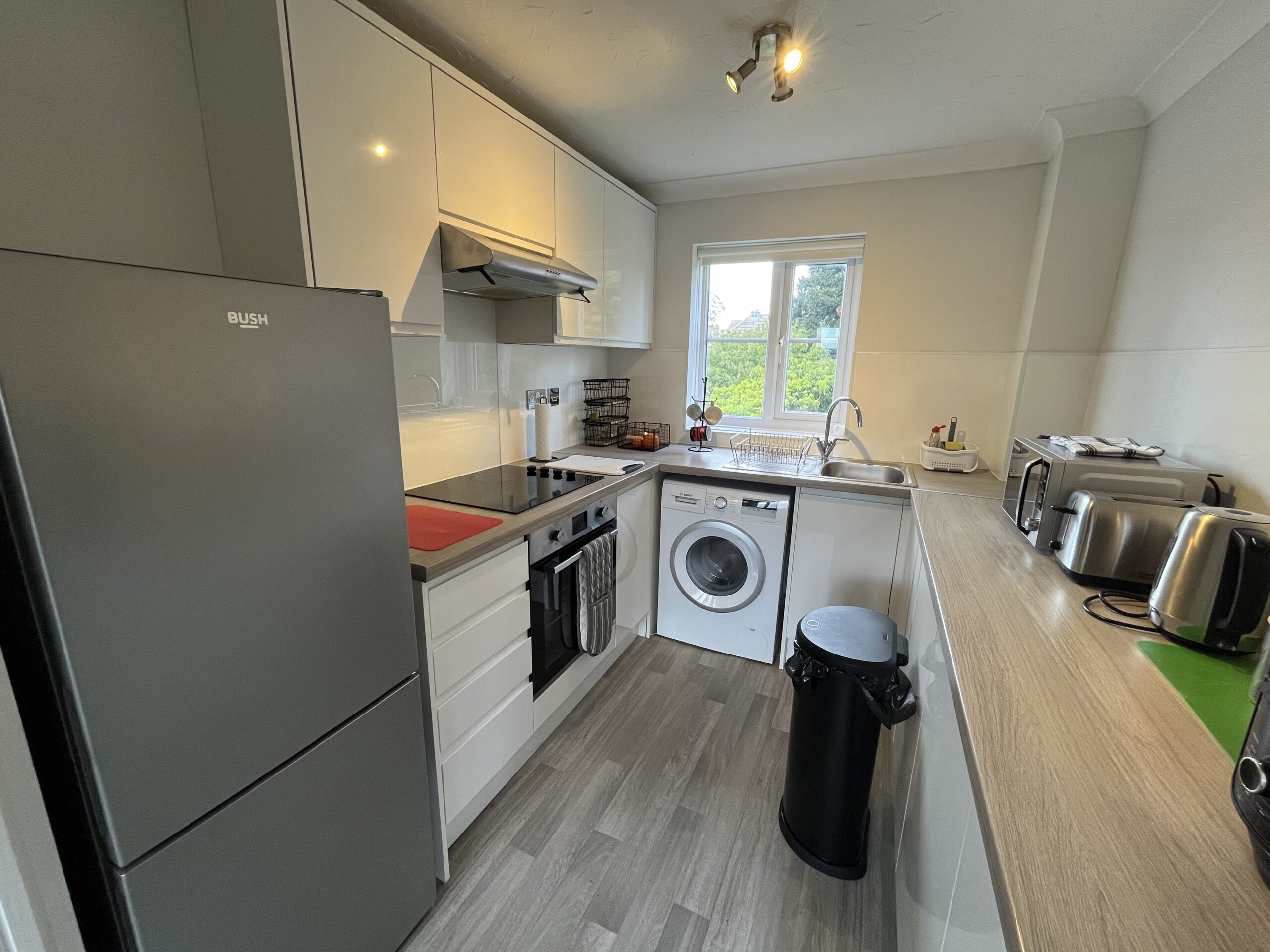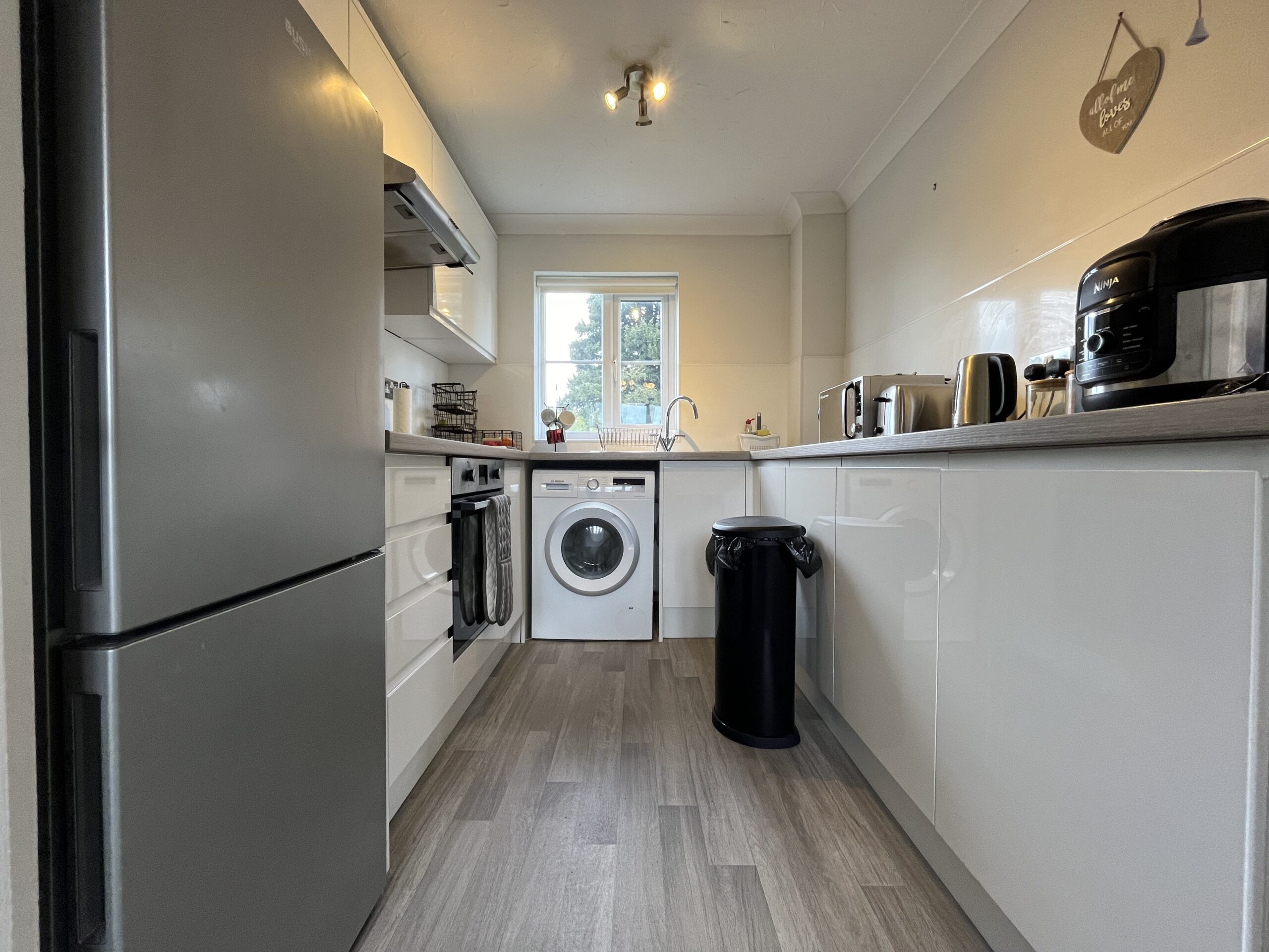 Range a matching base and eye level units with worktop space over, built in electric oven, space for fridge freezer, space for washing machine, double glazed window to rear and vinyl flooring.