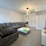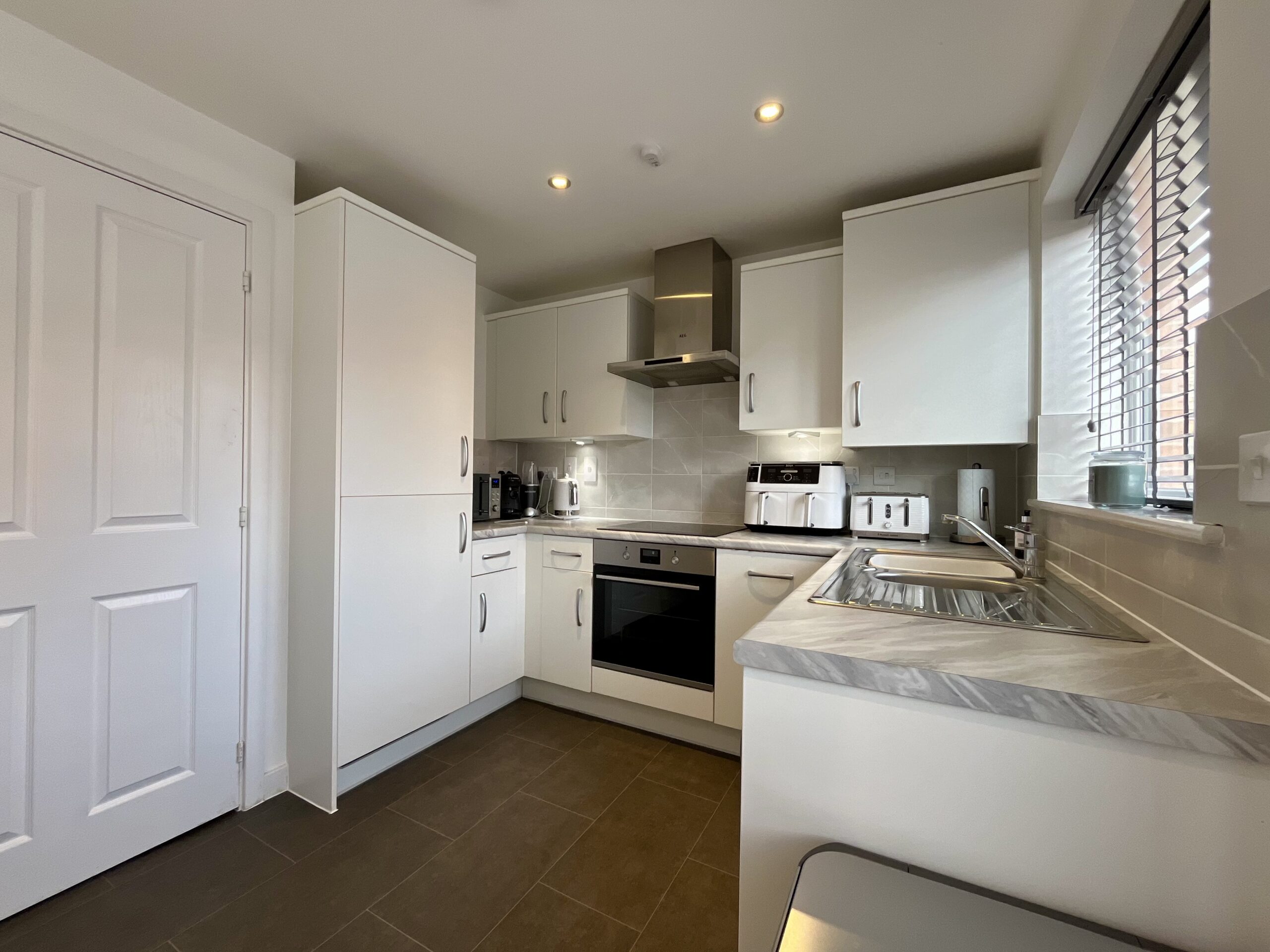 Vinyl to floor. Double doors leading to garden. Window to rear. Upgraded spotlights to ceiling. Fitted with a matching range of units with worktop space over. Four ring gas hob with electric oven and extractor unit over. Integrated appliances include; Fridge/Freezer and Washing Machine.