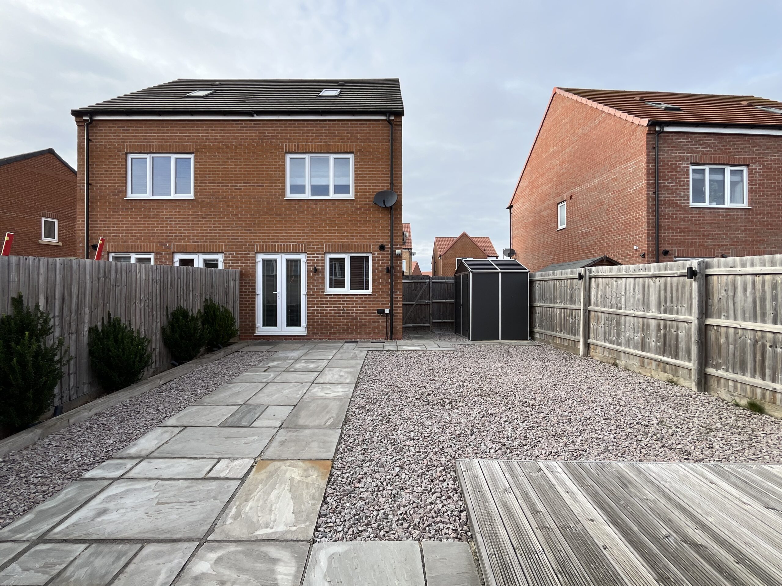 To the front of the property is a small front-garden area which is laid to gravel with paved slabs leading to the front door. To the side of the property is a private driveway, offering off-road parking for two vehicles with an EV charging point. To the rear is an 'L' shaped garden which is enclosed by timber fencing, the garden is low maintenance and is mainly laid to slabbed paving.