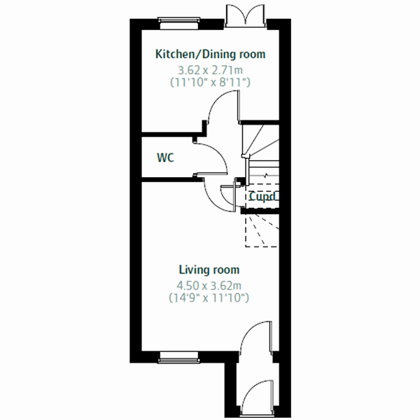 Vinyl to floor. WC. Stairs leading to first floor landing. Door leading to;
