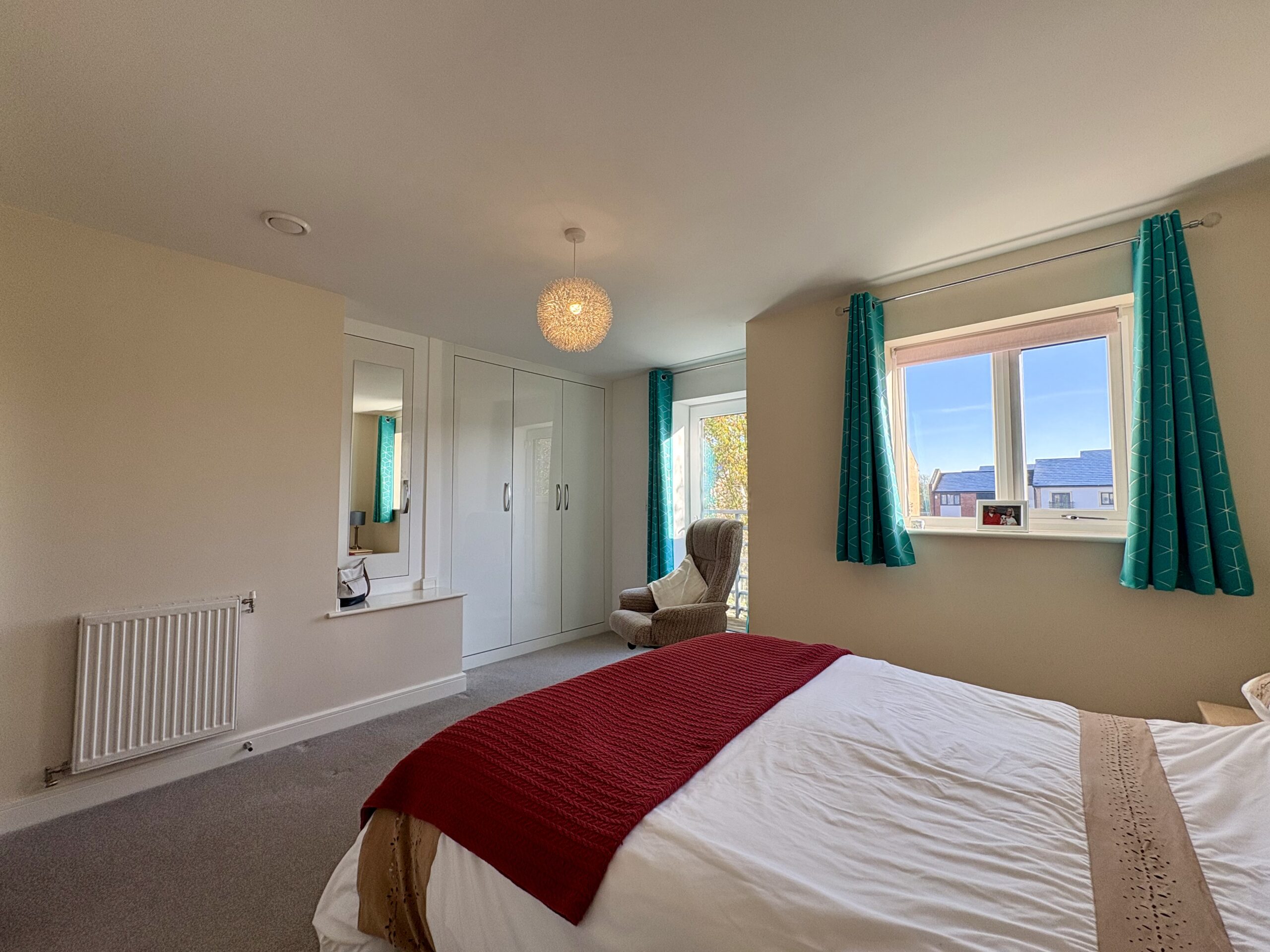 Carpet to floor. Window to front. Fitted wardrobes. Radiator. Door leading to private balcony area.