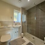 Upgraded bathroom suite. Window to rear. Tiled flooring and surround. Refitted walk-in shower. Ceramic WC and matching wash hand-basin. Shaver points.