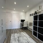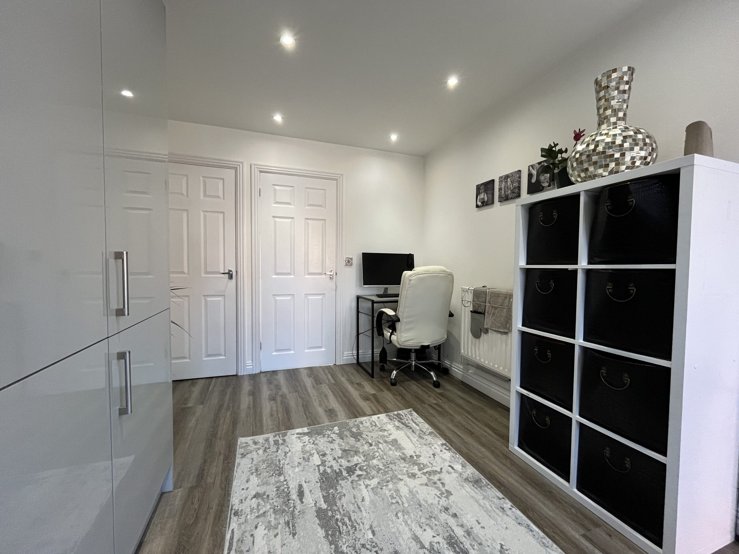 Laminate flooring. Window to rear aspect. Wall mounted dimmer lights and radiator.