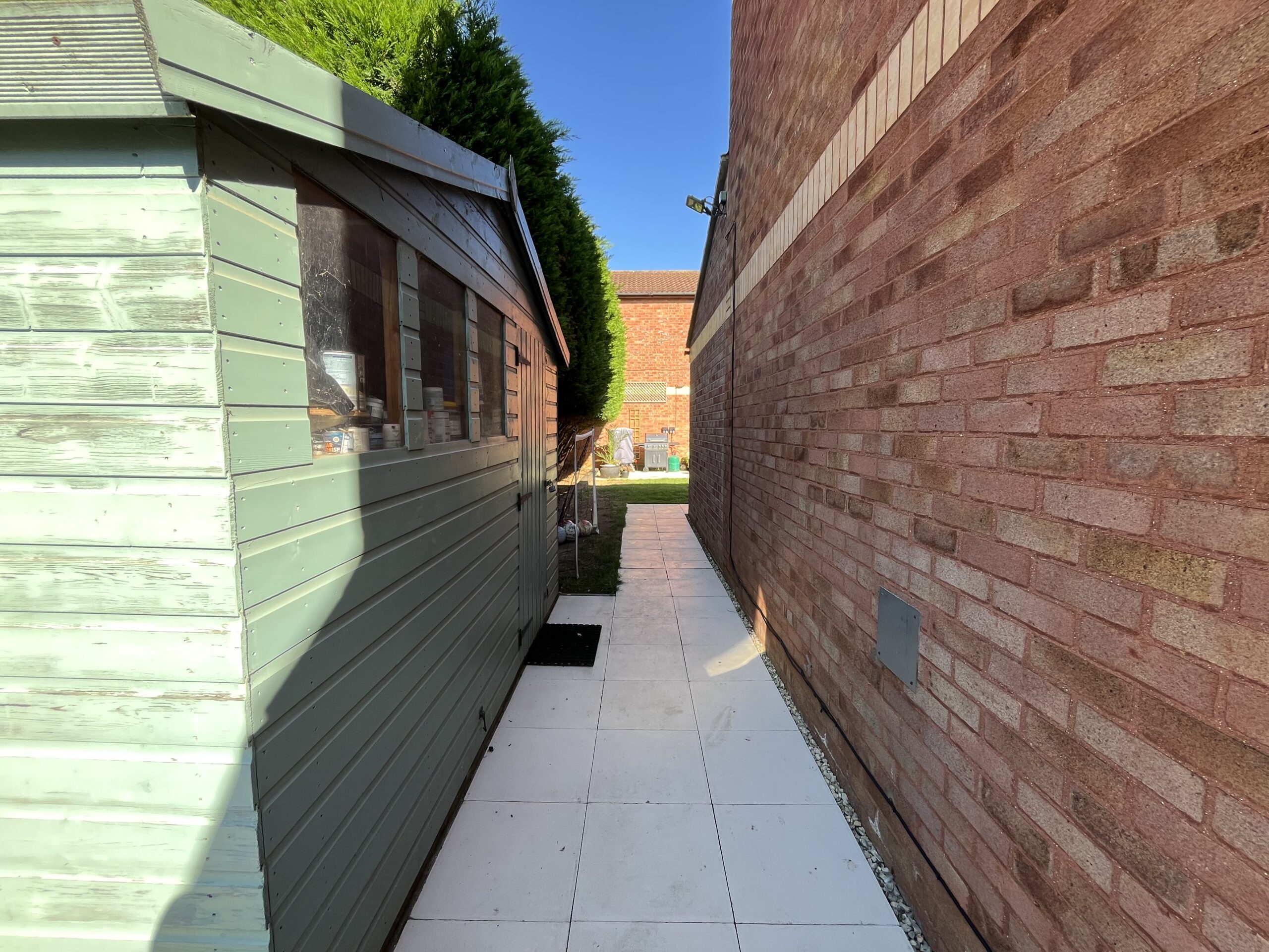 OUTSIDE - The front of the property benefits from driveway parking and a single garage with side gate access to rear garden. The rear garden is split between laid lawn and patio seating area with side access to garage. The rear garden is not over looked and has been upgraded by its current owners.