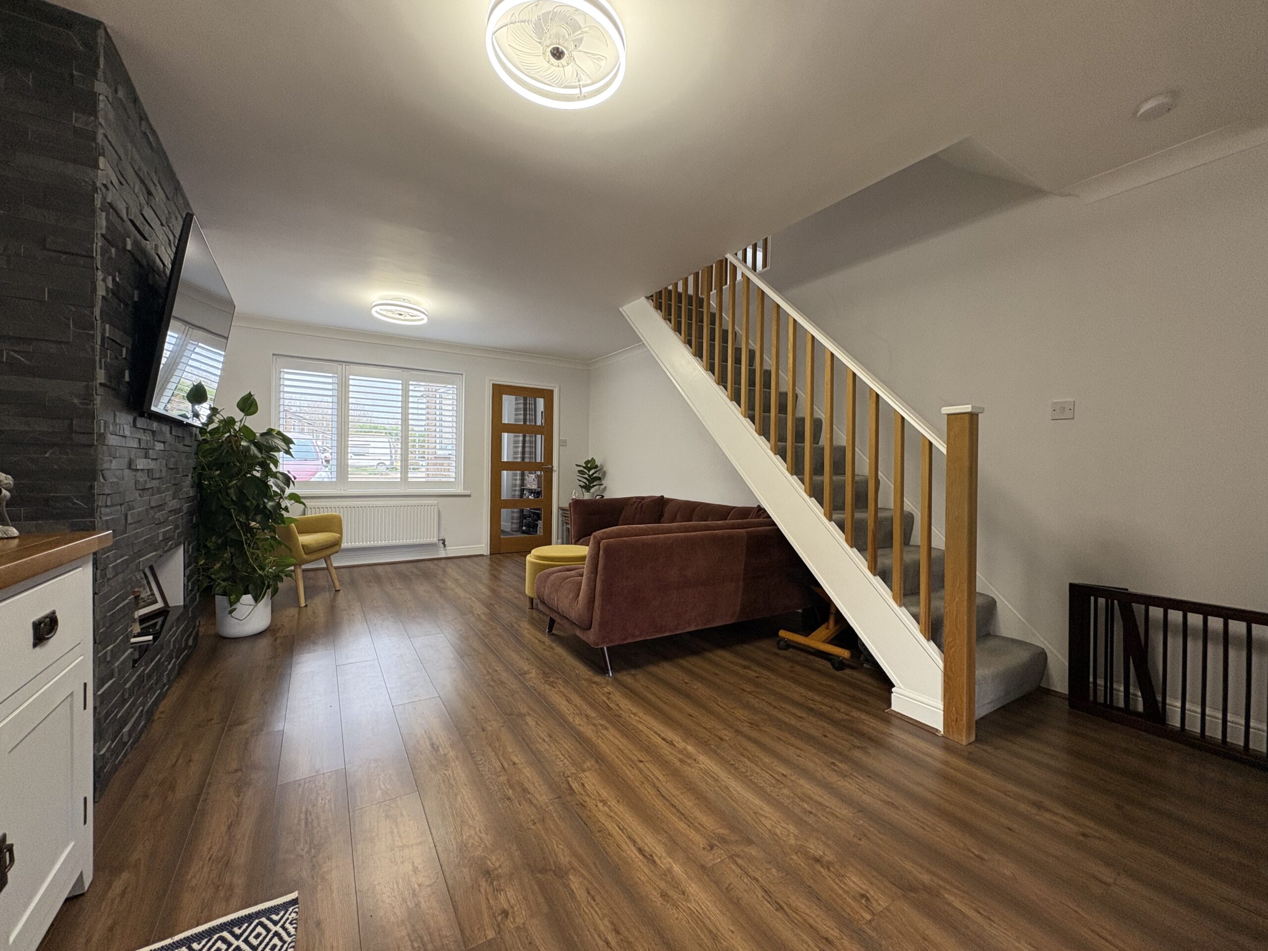 Laminate flooring. Staircase leading to first floor. Window to front aspect. Radiator. Bifold doors leading to Kitchen/Diner.