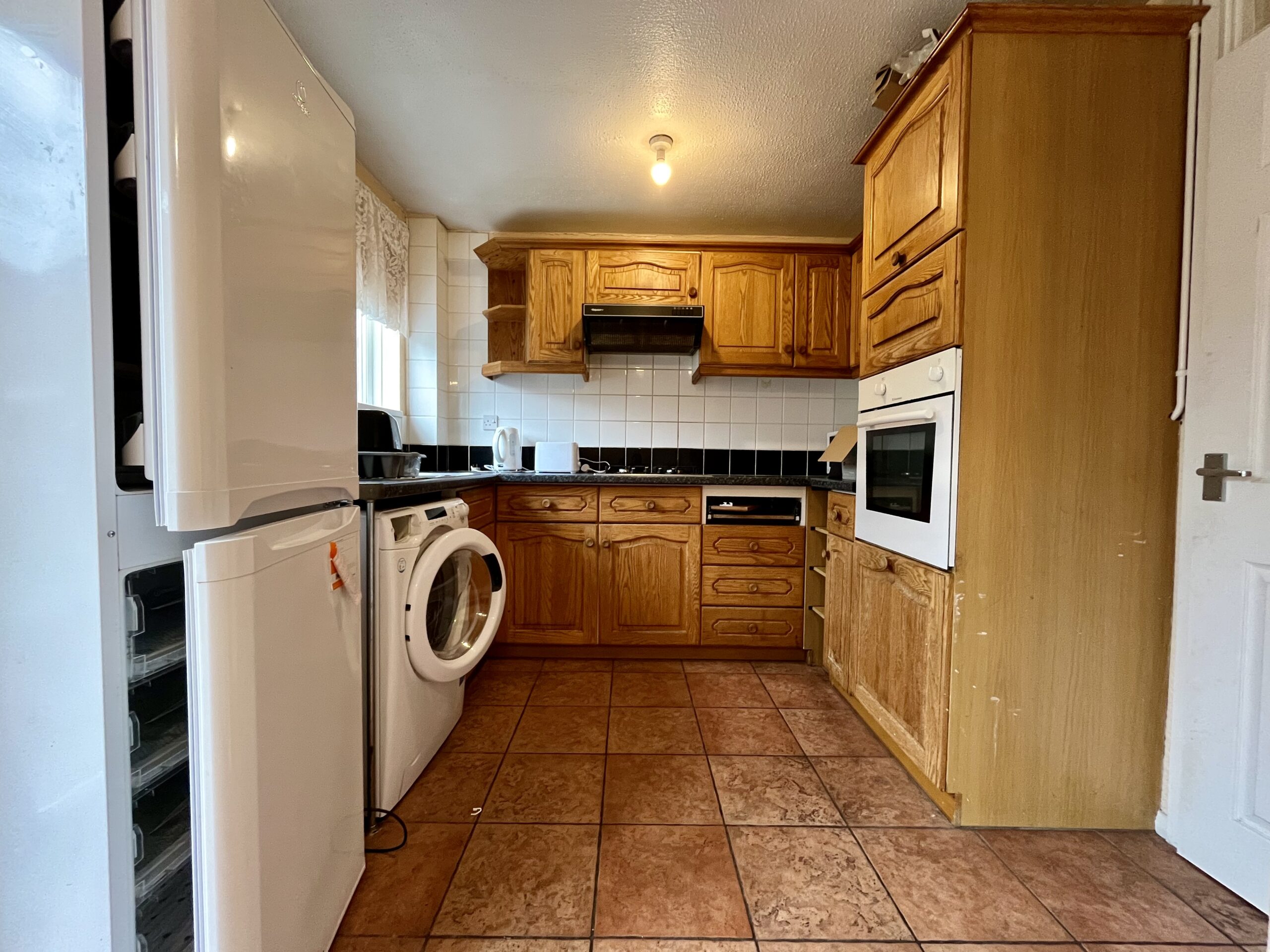 Vinyl flooring. Window to rear aspect. Open plan kitchen/dining area. Fitted kitchen with matching range of units with worktop space over.