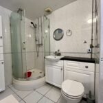 Three piece suite comprising; Closed corner shower. WC & Wash handbasin. Window to front aspect. Tiled flooring. Radiator. Extractor fan.
